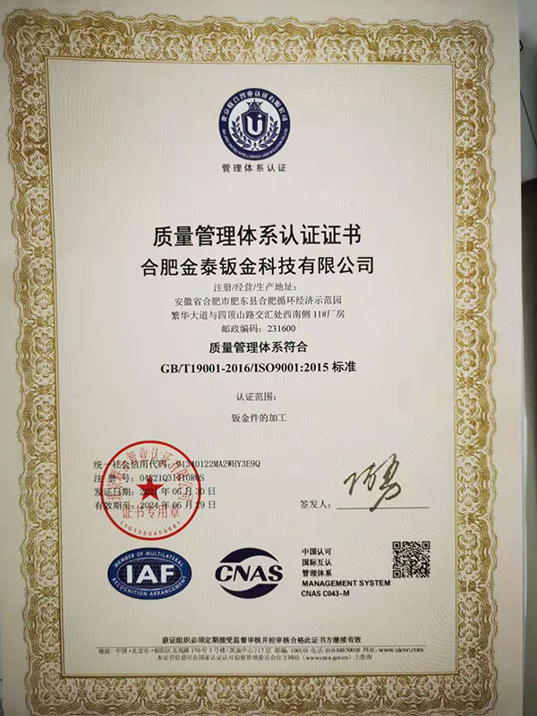 合肥金泰鈑金科技有限公司,專業(yè)從事精密鈑金件加工的新技術(shù)股份制企業(yè),主要承接各類鈑金加工、激光切割、沖壓件、機箱機柜、設備外殼、不銹鋼產(chǎn)品的精密鈑金加工制作。